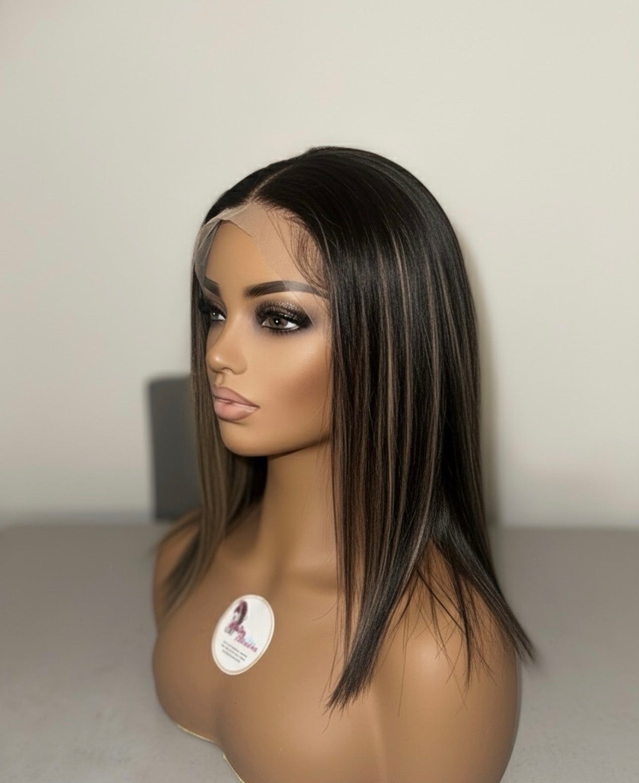 Su corte bob liso con mechas color caramelo ofrece un estilo moderno, sofisticado y fácil de mantener.