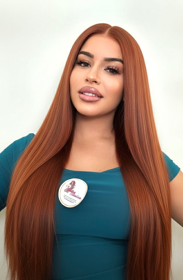 Peluca Lace Front 13x4 HD - Pelo Natural Premium - Color Cobre Vibrante (70cm) STELLA